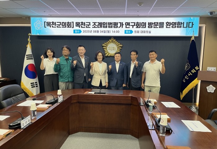 옥천군의회 의원연구단체인‘옥천군 조례 입법평가 연구회’(대표의원 김외식)는 4일, 군의원(김외식, 송윤섭, 박정옥 의원) 및 의회사무과 직원 총 7명이 충남 당진시의회를 방문해 입법 영향평가 선진사례 벤치마킹을 했다고 밝혔다.