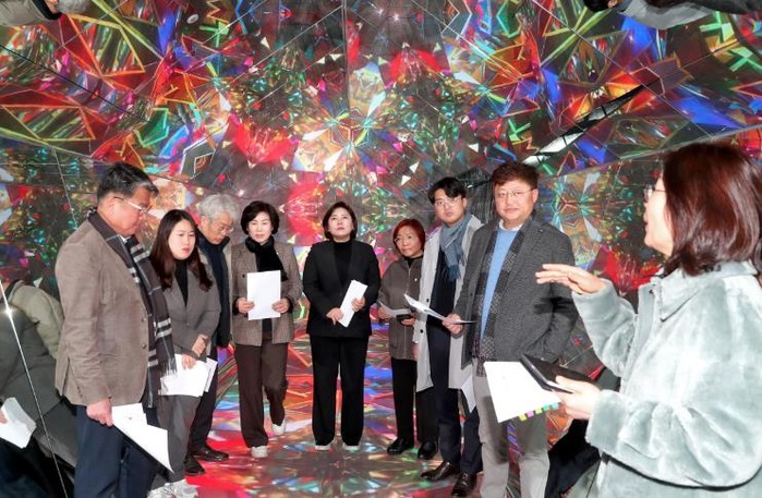 전주시의회 문화경제위원회가 17일 미디어아트를 활용한 공간인 완산벙커더스페이스를 찾아 시설을 둘러보고, 각종 현황과 향후 운영 방안 등을 청취했다.