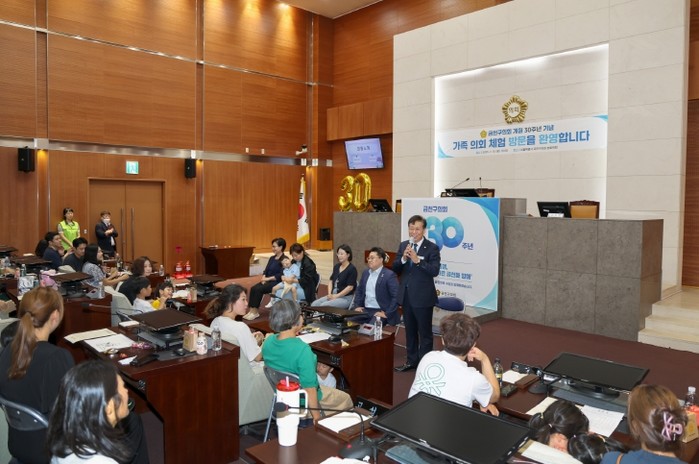 서울특별시 금천구의회가 지난 12일, 개원 30주년을 기념하여 ‘가족 의회체험’ 행사를 성황리에 개최했다. 이번 행사는 관내 4~7세 어린이를 동반한 24가족이 사전 신청을 통해 참여했으며, 약 80여 명이 금천구의회 본회의장과 로비에서 뜻깊은 시간을 함께했다.