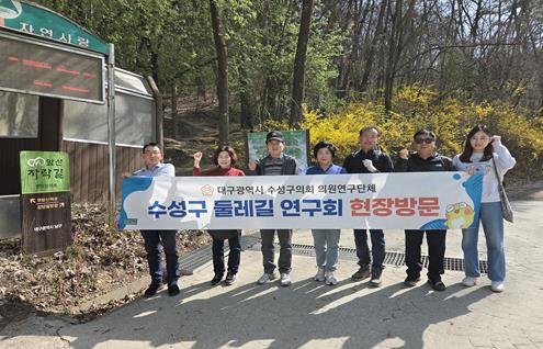 수성구의회 의원연구단체 ‘수성구 둘레길 연구회’가 지난 26일 대구 남구 대명동 앞산자락길을 방문해 정책 연구 활동을 진행했다.