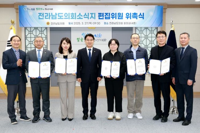 전라남도의회는 3월 27일 도의회 회의실에서 전라남도의회 소식지 편집위원 위촉식과 편집위원회 회의를 개최했다.