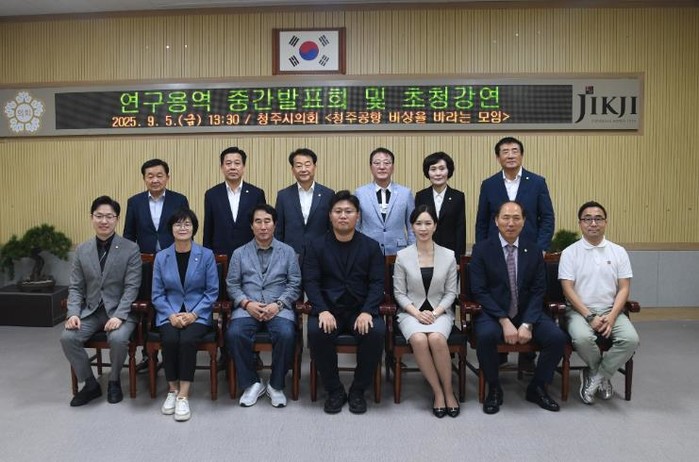 청주시의회 의원 연구단체 ‘청주공항 비상을 바라는 모임’은 5일 청주시의회 특별위원회실에서 연구용역 중간보고회와 전문가 초청강의를 개최했다.