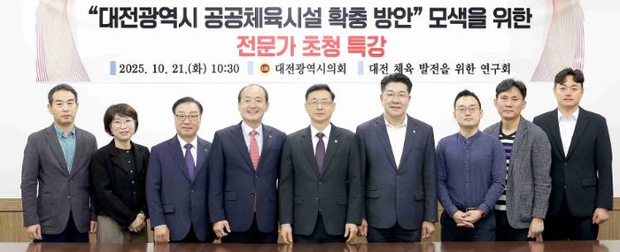 대전시의회 의원연구회인 ‘대전 체육 발전을 위한 연구회’는 21일 시의회 3층 공감실에서 '대전광역시 공공체육시설 확충 방안'을 주제로 전문가 초청 특강을 개최했다.