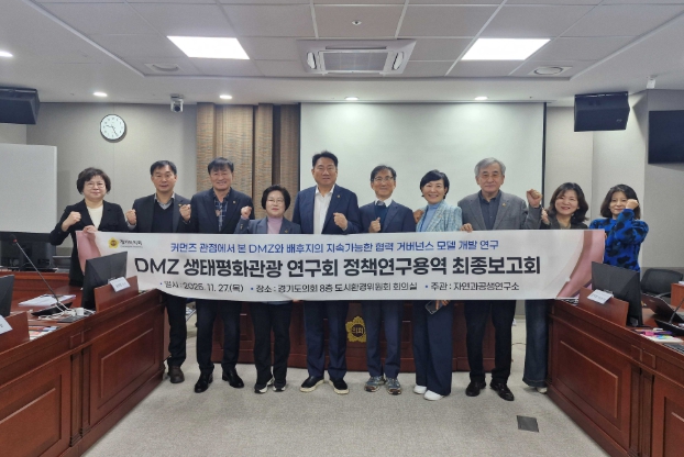 경기도의회 의원연구단체인 DMZ생태평화관광 연구회(회장 오준환 의원)는 지난 27일 경기도의회 도시환경위원회 회의실에서 '커먼즈 관점에서 본 DMZ와 배후지의 지속가능한 협력 거버넌스 모델 개발 연구' 용역 최종보고회를 개최했다.