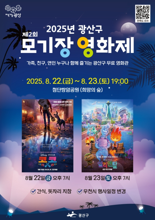 광주 광산구가 22일과 23일 첨단 쌍암공원에서 모기장 영화제를 재개최한다.