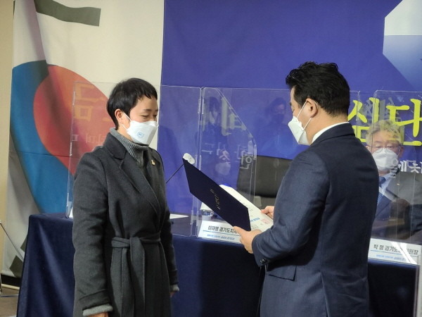 [프레스뉴스] 김대일 기자= 경기도의회 안전행정위원회 천영미 의원(더민주, 안산2)이 5일(화) 오전 10시 더불어민주당 경기도당 당사에서 열린 ‘2021년 신축년 새해맞이 단배식’에서 경기도당 우수조례 표창장을 받았다.