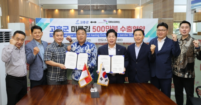 고흥군은 20일, 인도네시아 농수산물 식품가공 기업인 자바슈퍼푸드사(대표 필립배)와 500만 달러 규모(한화 73억 원)의 농수산물 수출협약을 체결하며, 인도네시아에 수출을 위한 중요한 발판을 마련했다.