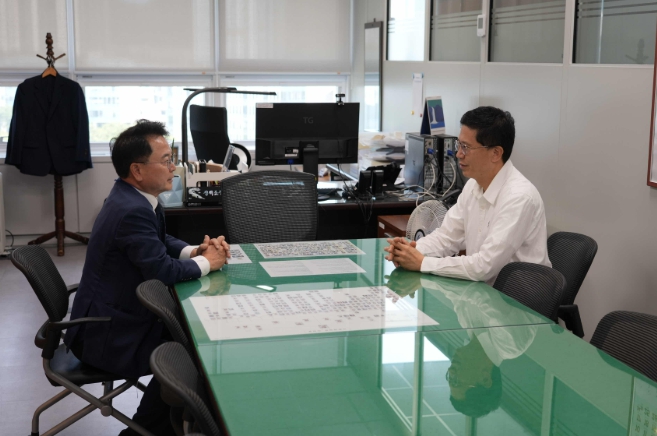 육동한 시장은 이날 첫 일정으로 김경수 지방시대위원장과 지역균형발전과 지방분권 정책을 주제로 환담을 나눴다.