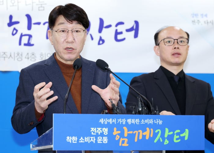 우범기 전주시장은 5일 시청 4층 회의실에서 기자회견을 열고 “최근 계속되는 정국 혼란 속에 장기화된 경기침체와 생활물가 상승 등 서민들의 경제 부담과 지역상권의 어려움이 날로 깊어지고 있다”면서 “전주시는 지속가능한 경제공동체의 첫걸음으로 기업과 시민, 공공기관, 소상공인이 함께하는 전주형 착한 소비자 운동 ‘함께장터’ 프로젝트를 시작한다”고 밝혔다.