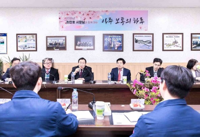 이날 최민호 시장은 김윤중 동양에이케이코리아 대표로부터 지역 경제계의 어려움과 재투자 문제 등을 경청하는 시간을 가졌다.