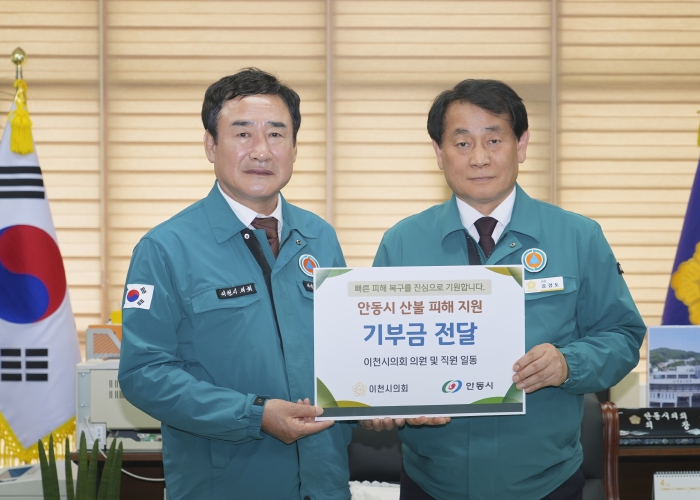 이천시의회는 9일, 자매결연 도시인 안동시의회를 직접 방문해 산불 피해 복구를 위한 소정의 성금을 전달했다.
