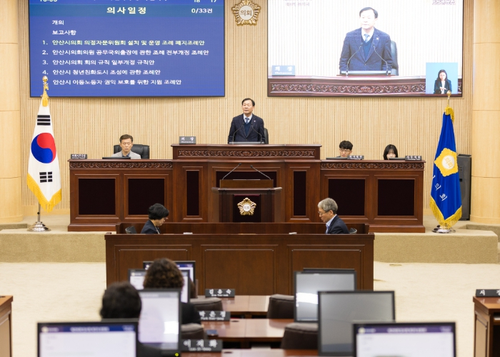 ‘안산시 청년 친화도시 조성에 관한 조례안’ 등 의원 발의 조례안 13건과 상임위원회 공통 안건인 ‘2025년도 제1차 수시분 안산시 공유재산 관리계획안’ 등도 상임위 심사 결과 대로 의결됐다.