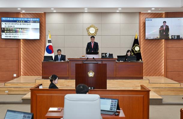 울산 중구의회는 11일 오전 본회의장에서 김영길 중구청장 등 관계 공무원이 출석한 가운데 제272회 임시회 제1차 본회의를 열고 7일간의 의사일정에 들어갔다.