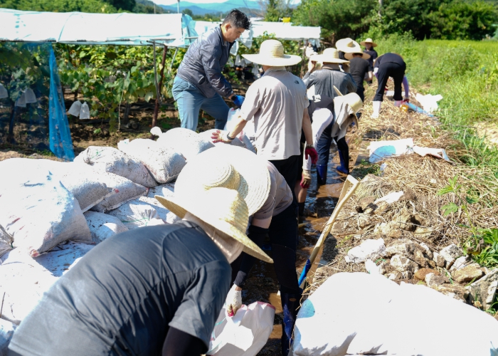 이날 복구 활동에는 임종훈 의장을 비롯한 의회사무과 직원 등 20여 명이 자발적으로 참여해 침수 피해를 입은 농가를 찾아 토사 제거, 쓰레기 수거 등 실질적인 복구 작업에 힘을 보탰다.