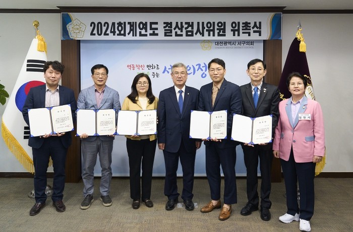 대전 서구의회는 제289회 임시회 의결을 통해 선임된 2024회계연도 결산검사위원 6명을 위촉하고, 9일 의장실에서 위촉장을 수여했다.