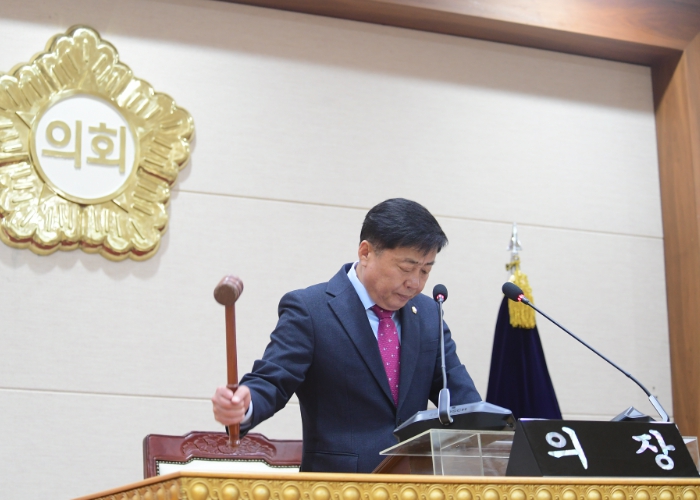 | ▲ 윤창철 의장이 의사봉을 두드리며 제376회 임시회 제2차 본회의를 주재하고 있다. |