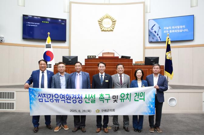 구례군의회는 지난 8월 28일 제322회 정례회 제1차 본회의에서 '섬진강유역환경청 신설 및 구례군 유치를 위한 결의안'을 채택했다.