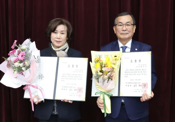 전주시의회 최주만 부의장과 박혜숙 문화경제위원장이 10일 전북특별자치도청에서 열린 민주평화통일자문회의 의장표창 전수식에서 의장상을 수상했다.