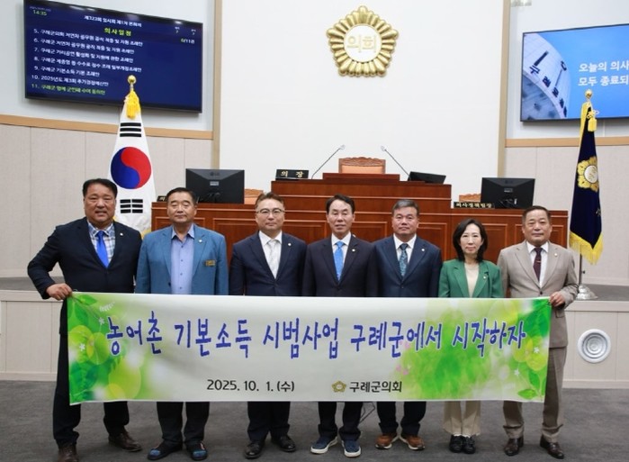 구례군의회는 지난 10월 1일 열린 제323회 임시회 본회의에서 '농어촌 기본소득 시범사업 선정 촉구 건의안'을 채택했다.