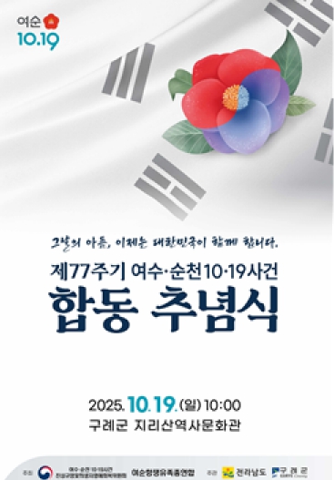 전남 구례군은 여순사건의 역사적 의미를 되새기고 희생자와 유족들을 위로하기 위한‘여순사건 제77주기 정부주최 합동추념식’이 오는 19일 구례군 지리산역사문화관에서 개최된다고 밝혔다.