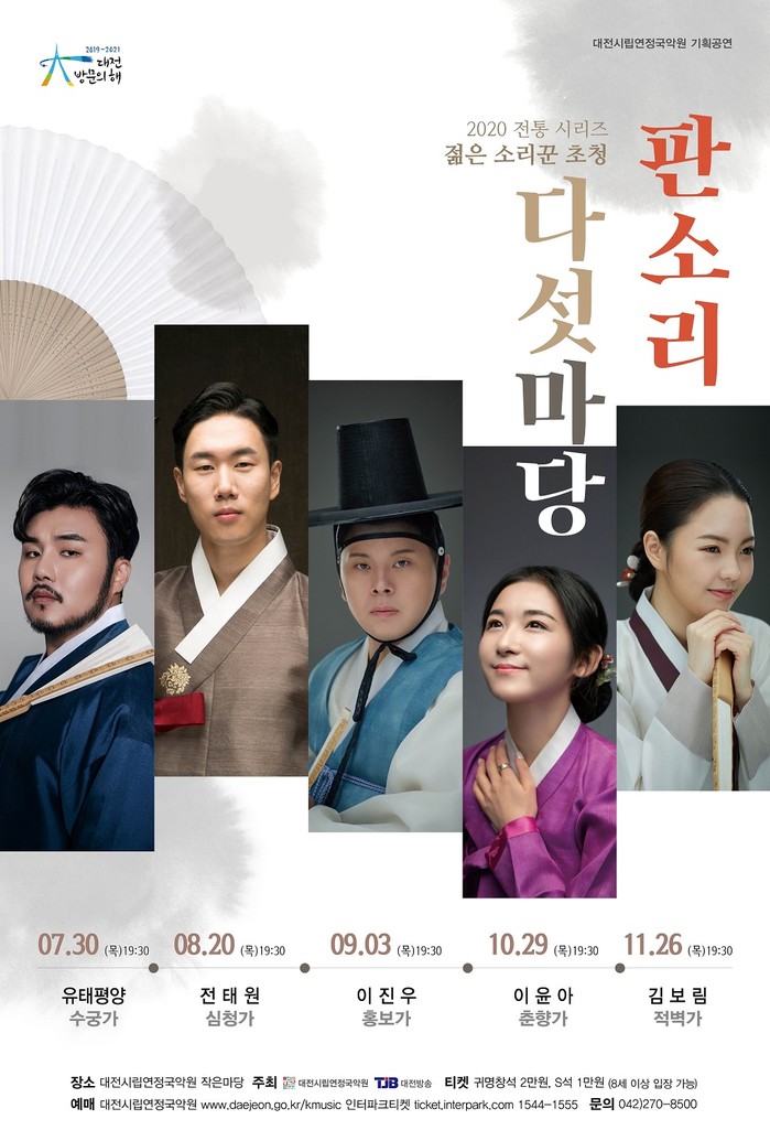 시립연정국악원 관계자는 “젊은 소리꾼, 차세대 명창들이 펼치는 대한민국 5대 판소리의 감동과 전율의 무대로 고품격 전통예술을 만끽 할 수 있는 공연”이라며 “코로나19로 지친 시민들에게 큰 위로가 되고 지역공연예술 활성화에도 기여할 것”이라고 말했다.