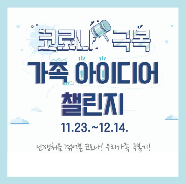 한국청소년활동진흥원(이사장 이광호)은 ‘코로나 극복 가족 아이디어 챌린지’공모전을 오는 12월 14일까지 진행한다. 이번 공모전은 코로나19 장기화로 겪었던 어려움을 가족이 함께 극복했던 다양한 사례를 모아 전 국민이 공유, 사회에 활력을 불어넣기 위한 취지로 추진된다.