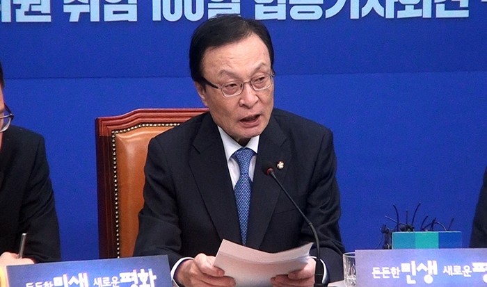▲3일 국회 더불어민주당 당 대표 회의실에서 열린 기자회견에서 발언하고 있는 이해찬 더불어민주당 대표. <사진=곽정일 기자> |