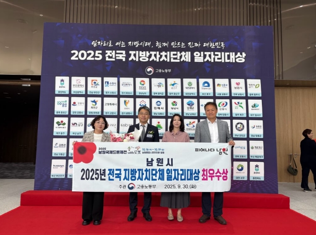남원시는 9월 30일 고용노동부 주관으로 청주 오스코에서 열린 ‘2025년 전국 지방자치단체 일자리대상’에서 최우수상을 수상했다고 밝혔다.