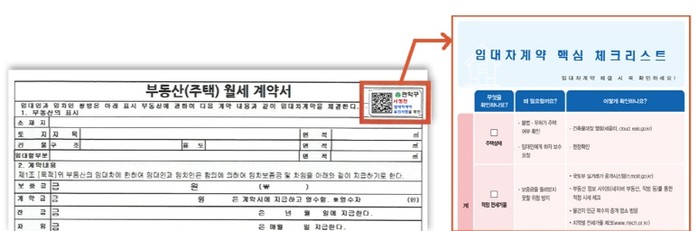 임차인이 해당 계약서의 QR코드를 찍어 접속하면 ▲임대차계약 전 ▲계약 체결 당일 ▲잔금 및 이사 이후 등 계약 단계별 확인 사항과 계약 시 필수 점검 사항 등을 확인할 수 있다.