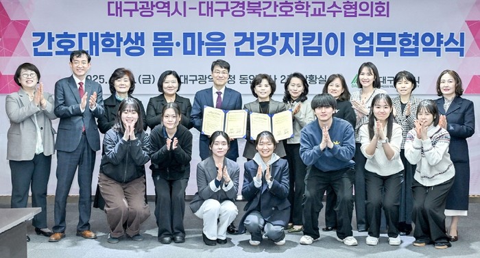 대구광역시와 대구경북간호학교수협의회는 3월 14일 오후 4시, 대구광역시 동인청사에서 ‘간호대학생 몸·마음 건강지킴이’ 업무협약을 체결했다.