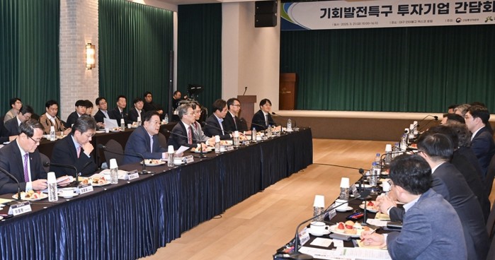 3월 21일 대구 인터불고 엑스코 호텔에서 산업통상자원부 주재로 영남권 기회발전특구 기업 간담회가 열렸다.