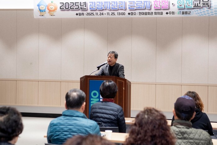 울릉군은 11월 24일과 25일 이틀간 한마음회관 대회의실에서 주요 관광지 근로자 약 50명을 대상으로 관광객 응대 친절 교육과 응급상황 대비 안전 교육을 실시했다.