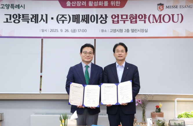 고양특례시는 국내 대표 전시 주최사 ㈜메쎄이상(대표 조원표)이 지자체와는 최초로 출산 장려 활성화 및 건강한 양육 문화 조성을 위해 손을 잡았다고 밝혔다.