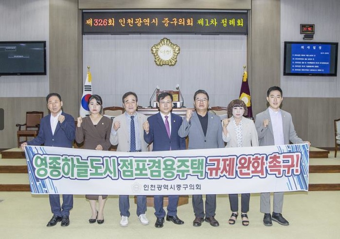 중구의회는 30일 본회의장에서 ‘영종하늘도시 점포겸용주택 규제 완화 ’를 촉구하는 성명서를 발표했다.