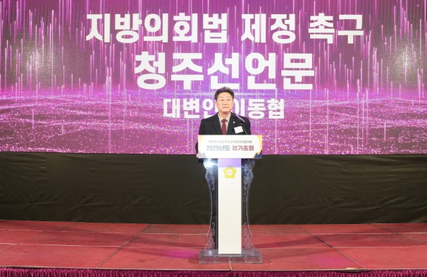 경주시의회 이동협 의장이 지난 5일 청주에서 열린 2025년도 대한민국시군자치구의회의장협의회 정기총회에 참석하여 지방의회의 완전한 독립을 위한 선언문을 낭독했다.
