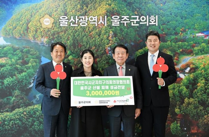 대한민국시군자치구의회 의장협의회가 울주군 산불 피해복구지원을 위한 성금 300만원을 기탁했다.