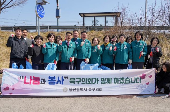 울산북구의회가 1분기 정기 자원봉사활동으로 20일 농소1동 소재 동천 자전거도로 일원 환경 정화에 나섰다.
