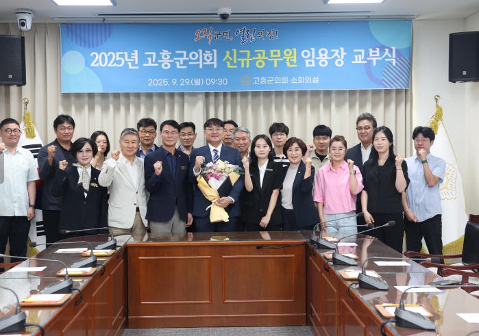 고흥군의회는 소회의실에서 2025년 9월 29일 자 인사발령에 따른 신규 공무원 임용장 교부식을 가졌다.