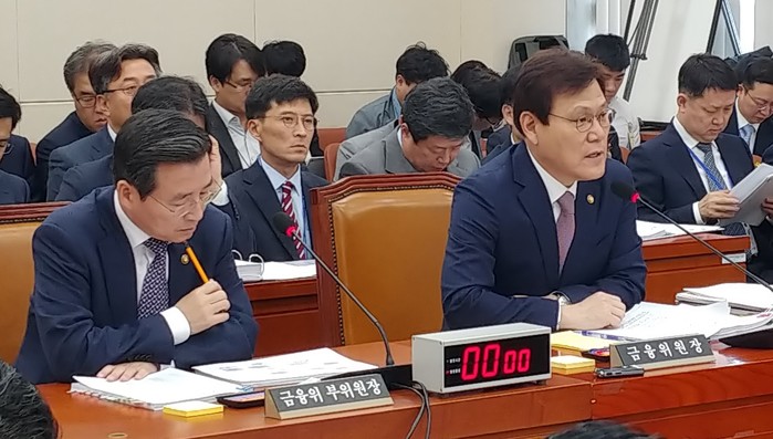 '대출금리 부당 산정 문제에 금융당국이 직접 나서야 한다'는 주호영 자유한국당 의원의 지적에 그는 "부당하게 산정된 금리에 대한 환급 조치는 완료됐지만, 아직 금감원이 최종 조치를 낸 것은 아니다"라고 반박했다.