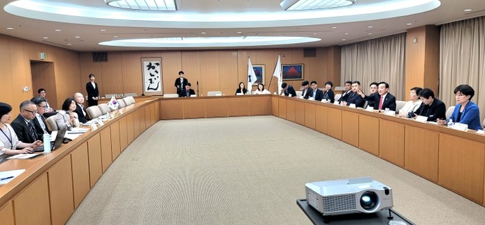 ▲ 박천동 북구청장과 북구의회 의원 등 북구 일본 방문단이 14일 도요타시청에서 간담회를 열고, 도요타시 츠지 쿠니에 부시장, 도요타시의회 타시로 켄 부의장과 민간분야 교류 추진방안에 대한 의견을 나눴다. |