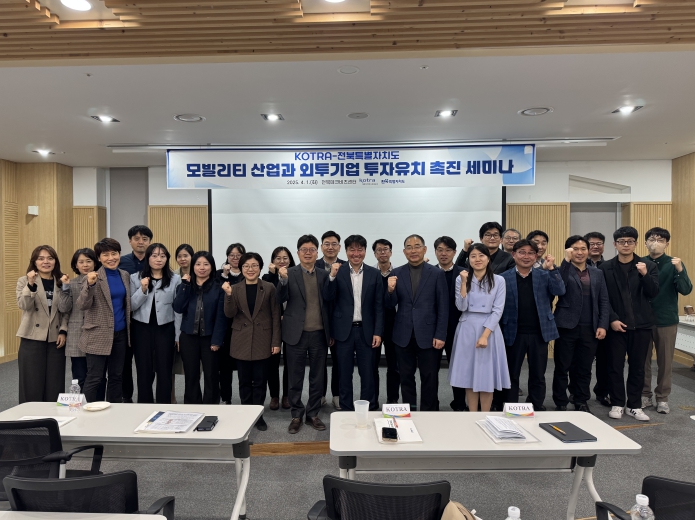 도는 1일 전주시 테크비즈센터에서 ‘모빌리티 분야 및 외투기업 투자유치 촉진 세미나’를 열고, 코트라(KOTRA), 자동차융합기술원(JIAT) 전문가들과 함께 기업 유치 전략을 공유했다.