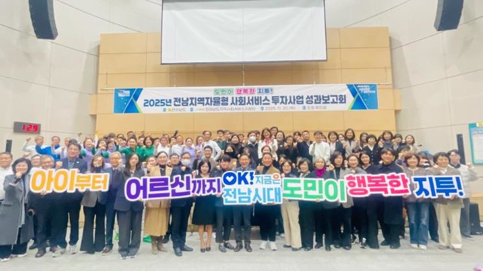 전라남도는 20일 도청 왕인실에서 2025년 지역자율형 사회서비스 투자사업 성과보고회를 열어 세대별 맞춤형 27개 사업을 통해 1만 8천여 명에게 서비스를 제공하고 1천여 명의 일자리를 창출한 실적을 공유했다.