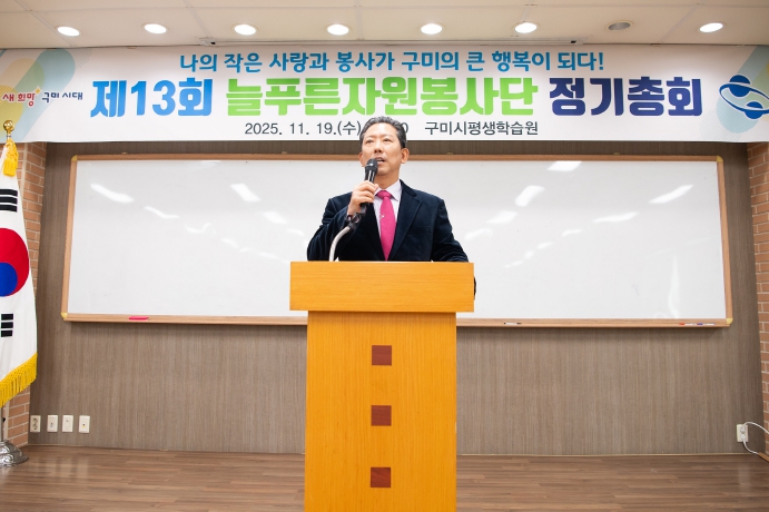 구미시는 11월 19일 평생학습원에서 ‘2025 늘푸른자원봉사단 정기총회’를 열었다. 행사에는 단원 50여 명이 참석했으며, 김장호 구미시장과 박교상 구미시의회 의장, 시의원들이 함께해 한 해 동안 현장에서 묵묵히 봉사를 이어온 단원들을 격려했다.