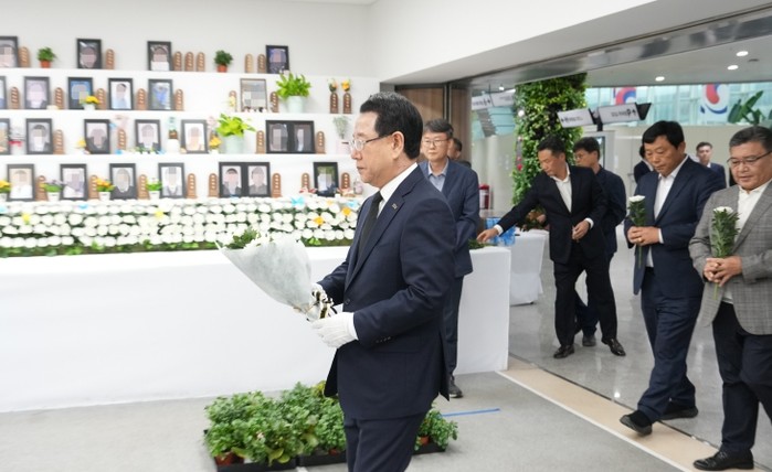 김영록 전라남도지사는 추석을 앞둔 3일 제주항공 여객기 사고 희생자 무안공항 합동분향소를 찾아 헌화·분향하며 희생된 분들의 넋을 기렸다.