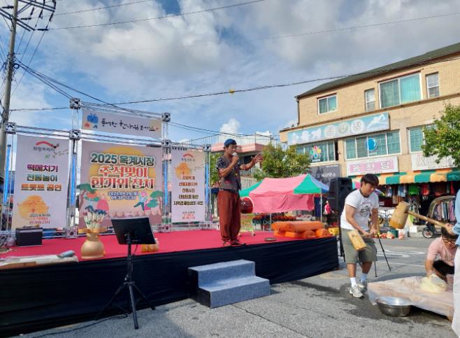 강릉시자원봉사센터에서는 29일 옥계시장에서 강릉옥계 산불피해지역 전통시장 리빌딩을 통한 지역경제활성화 사업의 일환으로 전통시장 활성화를 위한 추석맞이 행사를 진행했다.