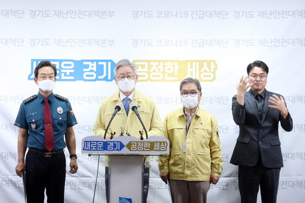 이재명 경기도지사와 이재정 경기도교육감, 최해영 경기남부지방경찰청장은 18일 경기도청에서 공동 기자회견을 열고 이런 내용을 담은 코로나 19 추가조치와 공동 대응 방안을 밝혔다.