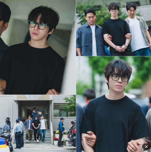 이 가운데 공개된 스틸 속에는 경찰에게 연행되는 광규의 모습이 담겨 있어 눈길을 끈다. 광규는 광선주공아파트 자택에서 긴급 체포돼 형사 강식(오대환 분)을 비롯한 수사팀에게 양팔을 붙들린 채, 수갑을 차고 아파트 현관을 나서는 모습.