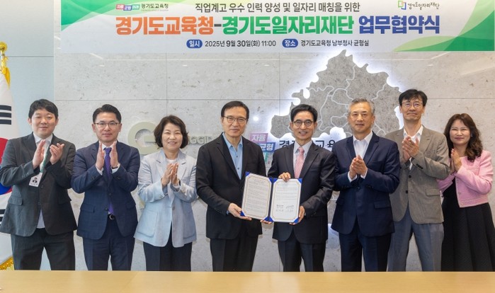 경기도교육청이 30일 남부청사에서 경기도일자리재단과 도내 직업계고 학생의 성공적 사회 진출 및 일자리 창출을 위한 업무 협약을 체결했다.