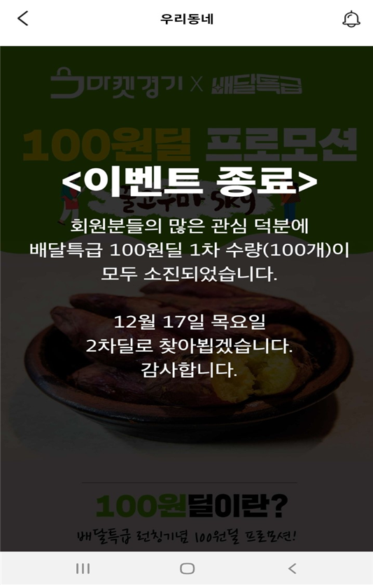 | ▲ 배달특급 X 마켓경기 100원딜 이벤트 |