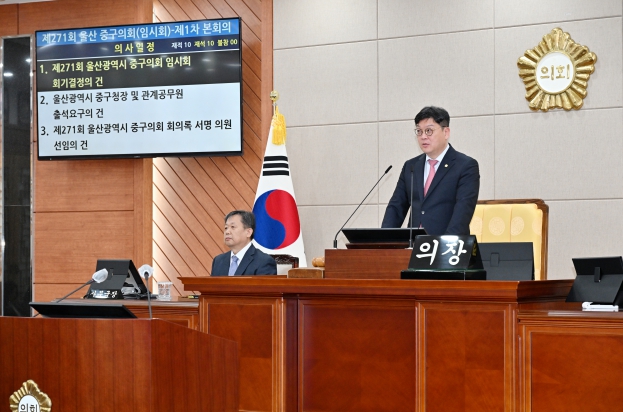 울산 중구의회는 14일 오전 본회의장에서 김영길 중구청장 등 관계 공무원이 출석한 가운데 제271회 임시회 제1차 본회의를 열고 7일간의 의사일정에 들어갔다.